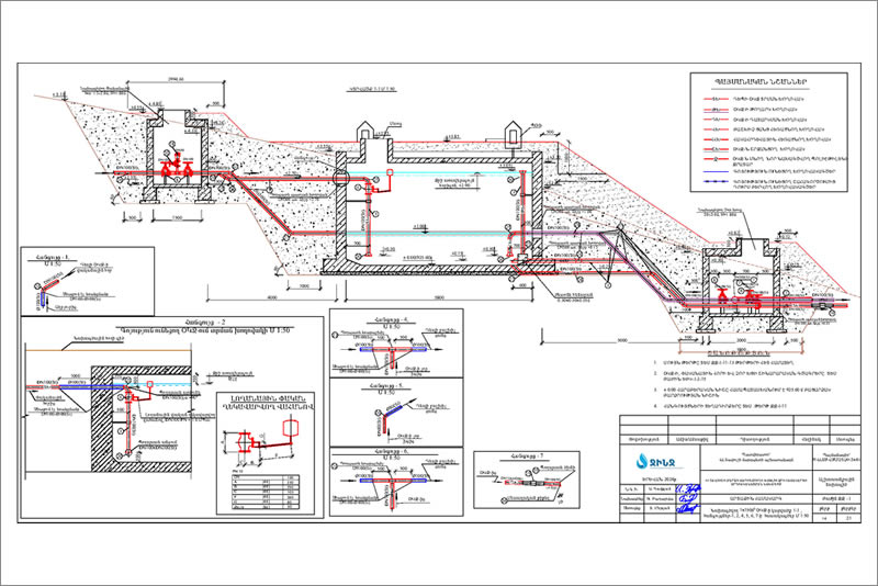 - բաշխիչ ցանցում ընդհանուր 20 հատ՝ օդահեռ, ճնշման կարգավորիչ, փականային և ստորգետնյա հրշեջ հիդրանտի ե/բ կլոր հորերի կառուցում,